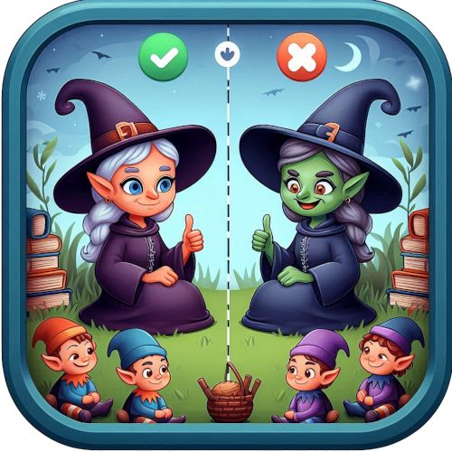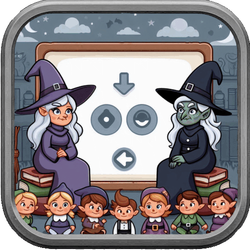 Version interactiveUne version numérique permet une utilisation autonome par les enfants. Les questions apparaissent aléatoirement comme dans la version papier. Les portraits des deux sorcières se complètent automatiquement.